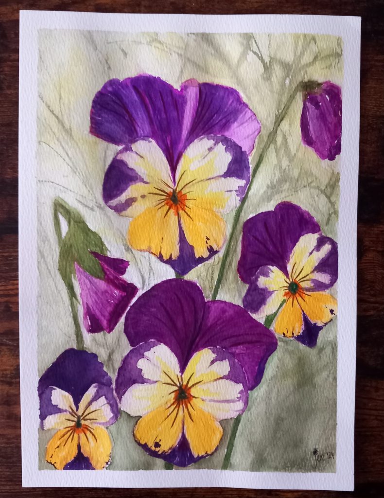 Pansies: £50 ONO (painting approx. A4 – supplied with basic frame)