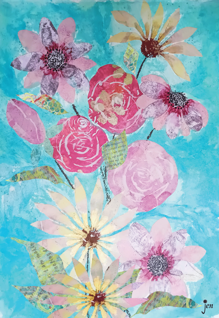 Jen Art: This piece was created using a range of my hand-made collage papers.