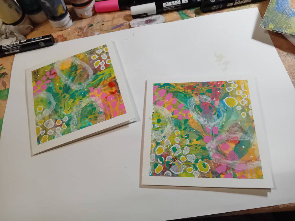 Jen Art: A pair of cards hand-painted in acrylic (paint and pens). Copies available to purchase via: https://mademe.co.uk/shop/jen-art/